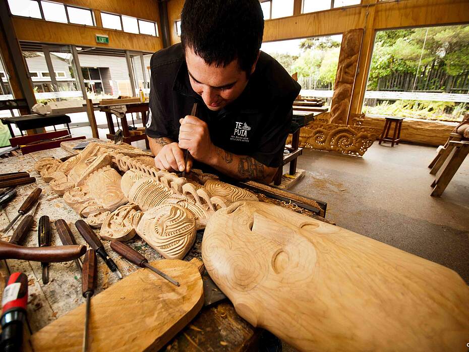 Aber nicht nur die Natur, auch die Kultur macht Rotorua zu einem besonderen Reiseziel. Rotorua ist ein Zentrum der Maori-Kultur, und Te Puia ist das kulturelle Herzstück dieser Region. Hier kannst Du nicht nur die geothermischen Besonderheiten bestaunen, sondern auch in die Geschichte und Traditionen der Maori eintauchen. In Te Puia kannst Du authentische Maori-Kunstwerke sehen, traditionelle Tänze und Zeremonien erleben, ein „Hangi“ – das typische Essen der Maori aus dem Erdofen - zu genießen und Du kannst sogar dabei sein, wenn kunstvolle Holzschnitzereien gefertigt werden.